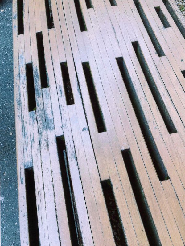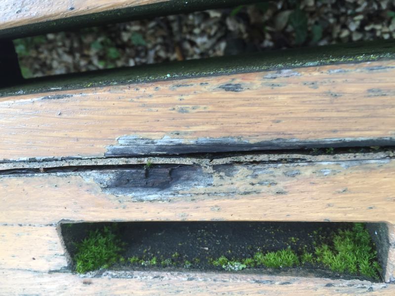 Die aus Eichenlamellen gefertigten Sitzbänke waren in die Jahre gekommen, und das sah man ihnen auch deutlich an. Das Holz war an vielen Stellen aufgerissen, teilweise mehrere Zentimeter tief. An manchen Stellen wuchs sogar Moos in den Zwischenräumen. Der Lack war ab – im wahrsten Sinne des Wortes!