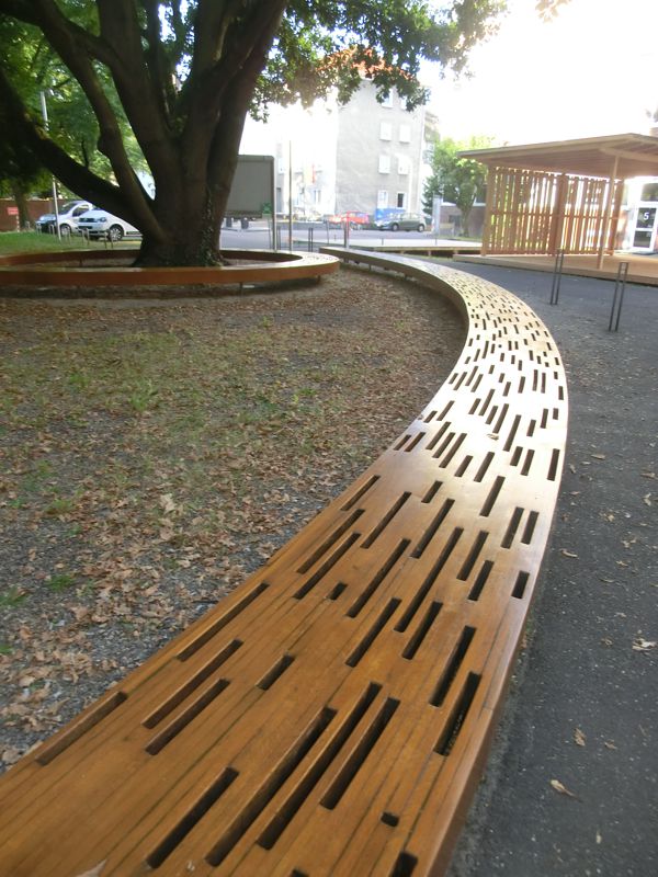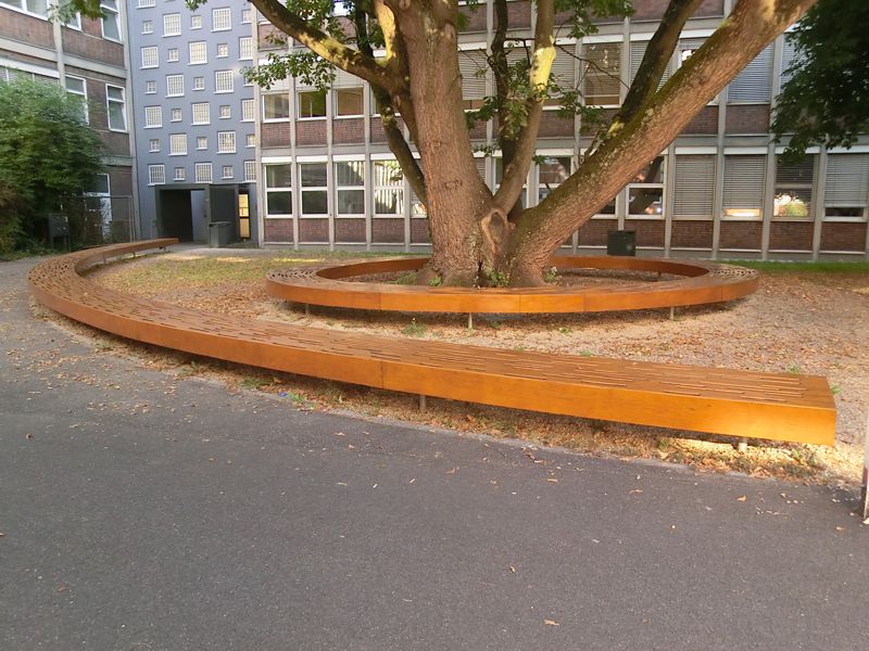 Ein weiteres außergewöhnliches und herausforderndes Projekt war die Aufarbeitung der Sitzbänke an der HTW (Hochschule für Technik und Wirtschaft des Saarlandes) in Saarbrücken.