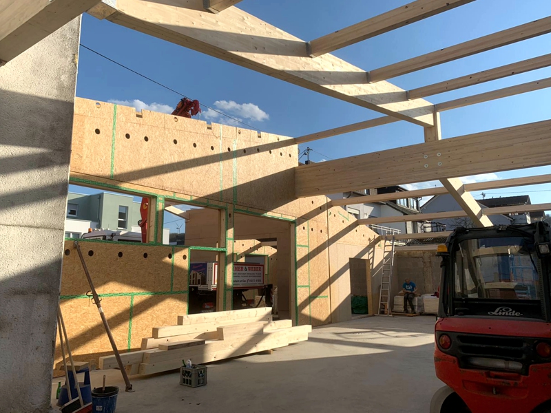 Rundum waren bereits einige ältere Bestandsbauten vorhanden, so dass die Erweiterung eingepasst werden musste. Bei 28 m Länge und 16 m Breite war das eine richtige Puzzlearbeit.