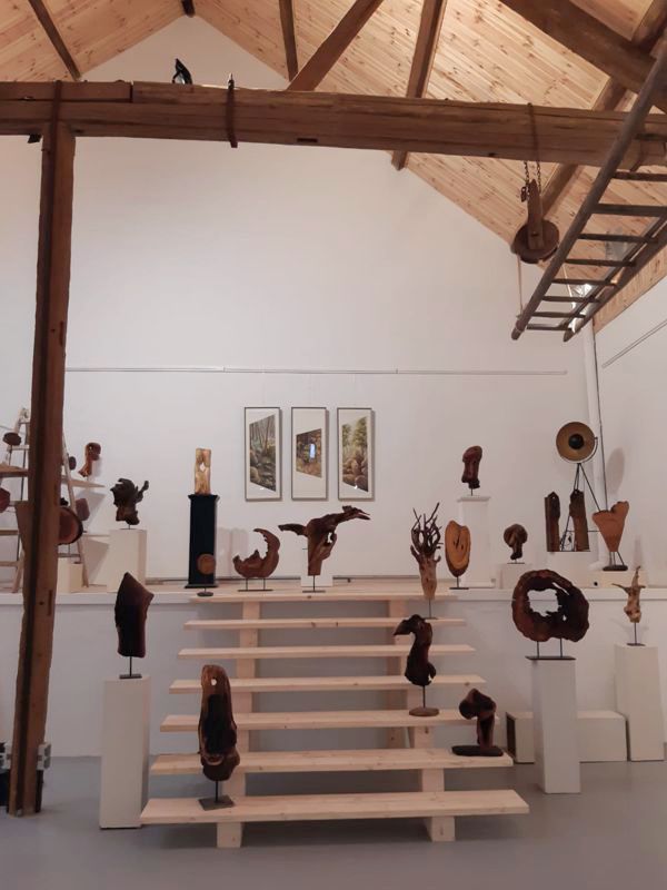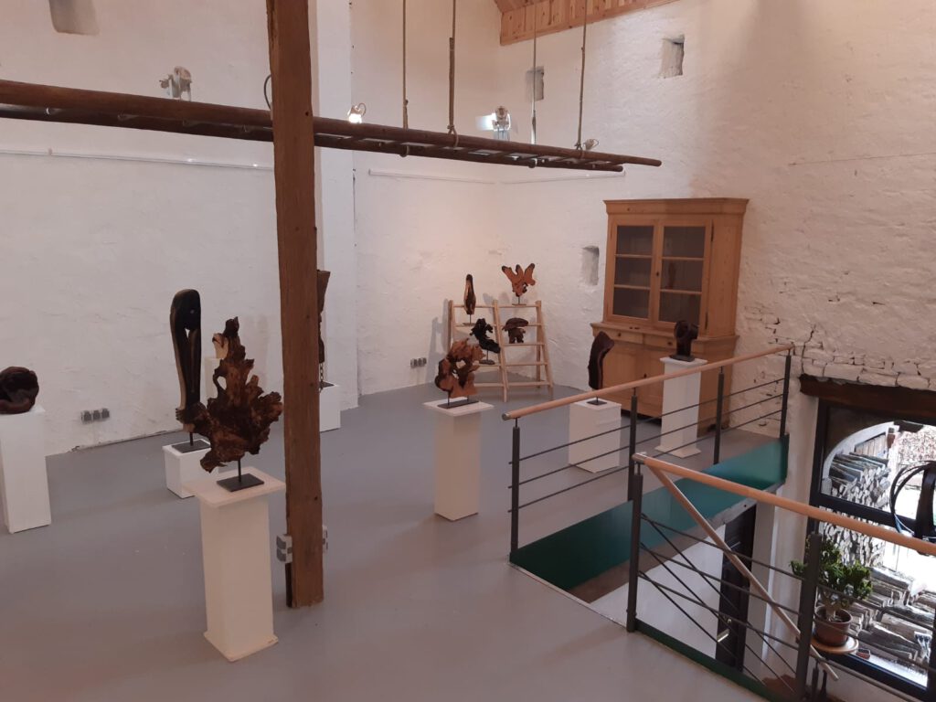 Und hier die Bilder des fertigen Ausstellungsraumes (die Treppe wurde ebenfalls von uns angefertigt). Wer mehr über den Künstler und seine Arbeiten wissen möchte findet hier Infos: www.holz-impression.de.